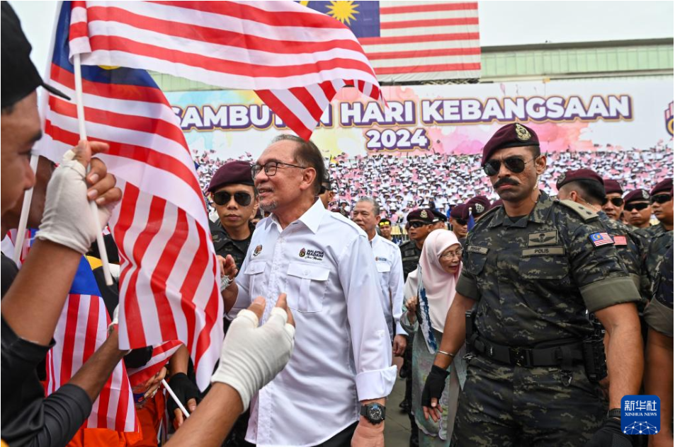 8月31日,在馬來西亞普特拉賈亞,馬來西亞總理安瓦爾出席馬來西亞獨立67周年慶典活動。當(dāng)日,馬來西亞舉行多種活動慶祝獨立67周年。新華社發(fā)(張紋綜 攝)
