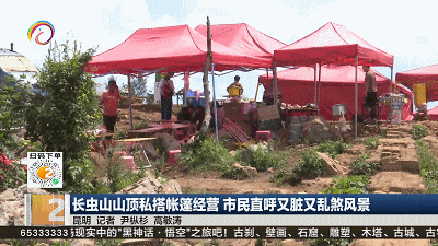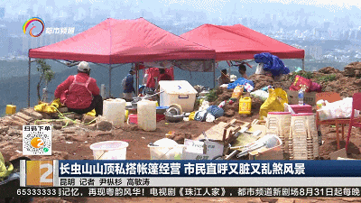 說(shuō)起能拍到昆明城市全貌的打卡點(diǎn),長(zhǎng)蟲(chóng)山絕對(duì)排在首位。但這個(gè)網(wǎng)紅打卡點(diǎn),最近卻讓不少市民很失望?;ㄒ粋€(gè)多小時(shí)爬到山頂,映入眼簾的卻是雜亂搭建的帳篷,以及隨地丟棄的垃圾!9月1日上午11點(diǎn),記者來(lái)到長(zhǎng)蟲(chóng)山山頂,昆明市的全景沒(méi)看到,最先映入眼簾的是一頂頂紅色帳篷。