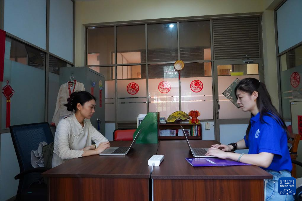 9月4日,在位于斯里蘭卡中央山脈南麓的薩伯勒格穆沃大學(xué),薩伯勒格穆沃大學(xué)孔子課堂的教師張歡(右)和夏子涵(左)在辦公室里備課。新華社記者 陳冬書 攝