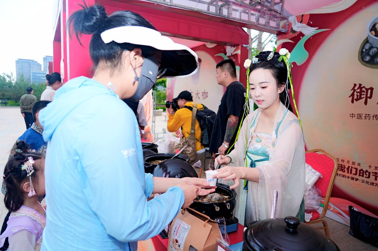 在“御膳房”展區(qū),熱氣騰騰的砂鍋中飄散出撲鼻的香味,濃香的姜片羊肉湯、鮮味十足的八寶雞湯、清香美味的薏苡仁小米粥……人們在品嘗美味的同時也進一步了解了中醫(yī)文化和健康知識?!斑@場活動辦得太好了,很有節(jié)日氛圍。我們的生活越來越好,這要感謝我們的黨和國家啊!”81歲的觀展老人林發(fā)珍感慨地說。