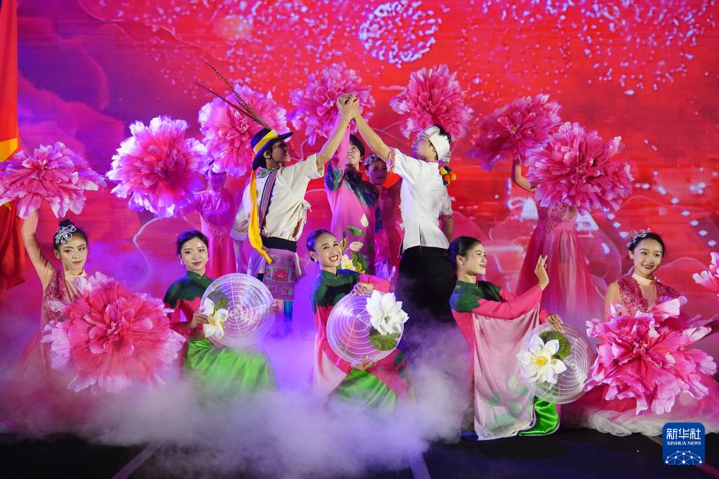 9月16日,在越南胡志明市,藝術家在中越跨國中秋晚會上表演。新華社發(fā)(云南省人民政府新聞辦公室供圖)