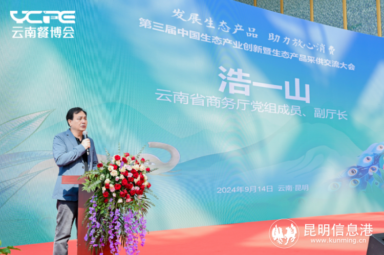 活動(dòng)開幕式上,云南省商務(wù)廳黨組成員、副廳長浩一山出席大會(huì)并致辭,本次大會(huì)的召開對(duì)于推動(dòng)中國生態(tài)產(chǎn)業(yè)創(chuàng)新、促進(jìn)生態(tài)產(chǎn)品采供交流,助力云南生態(tài)文明和生態(tài)產(chǎn)業(yè)的跨越式發(fā)展,具有十分重要的意義。