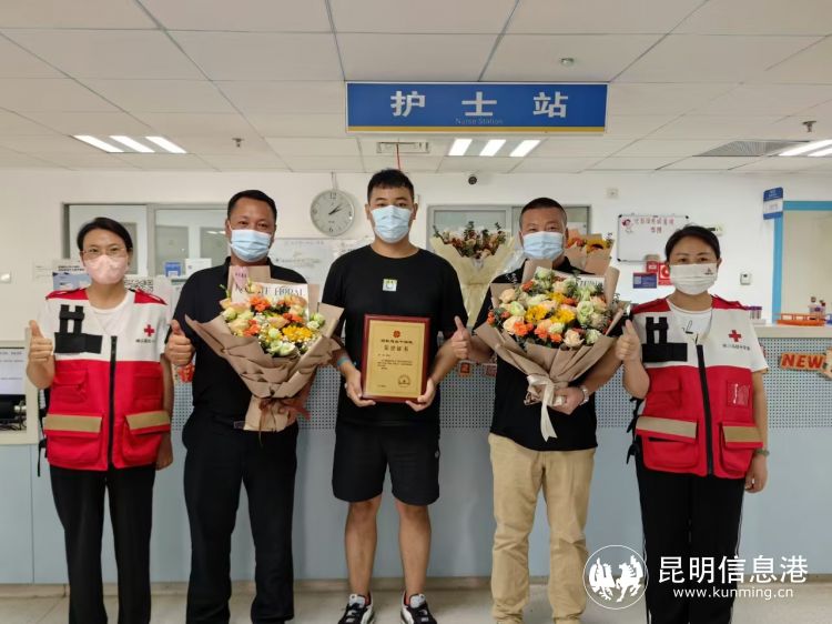 值得一提的是,小方所在單位的領(lǐng)導(dǎo)非常支持小方的善舉,不光給小方批了假,還專門派小方的同事來陪同他捐獻,在他捐獻的這一天,他們單位的領(lǐng)導(dǎo)和縣上的紅十字會工作人員專程從峨山上來看望他,為他的善舉點贊。