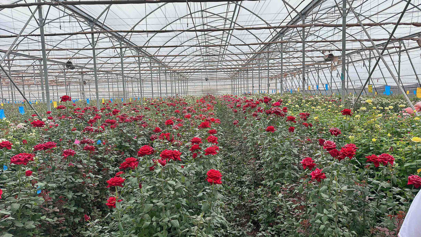 以玫瑰鮮切花為例,簡易設施地栽玫瑰年畝產(chǎn)約5萬枝,智能溫室基質(zhì)栽培年畝產(chǎn)可達15萬枝。依托晉寧區(qū)“一縣一業(yè)”示范縣、云南花卉產(chǎn)業(yè)集群等項目支持,昆明市晉寧區(qū)張良花卉專業(yè)合作社打破原有“竹竿棚+地栽”種植模式,帶動周邊農(nóng)戶推廣“鋼架薄膜溫室+基質(zhì)栽培”模式,三年時間建成玫瑰無土栽培設施大棚150畝,配套建設采后處理中心3000平方米,帶動就業(yè)60余人,玫瑰畝均產(chǎn)量由3萬枝提升至10萬枝,實現(xiàn)產(chǎn)量、品質(zhì)雙提升。