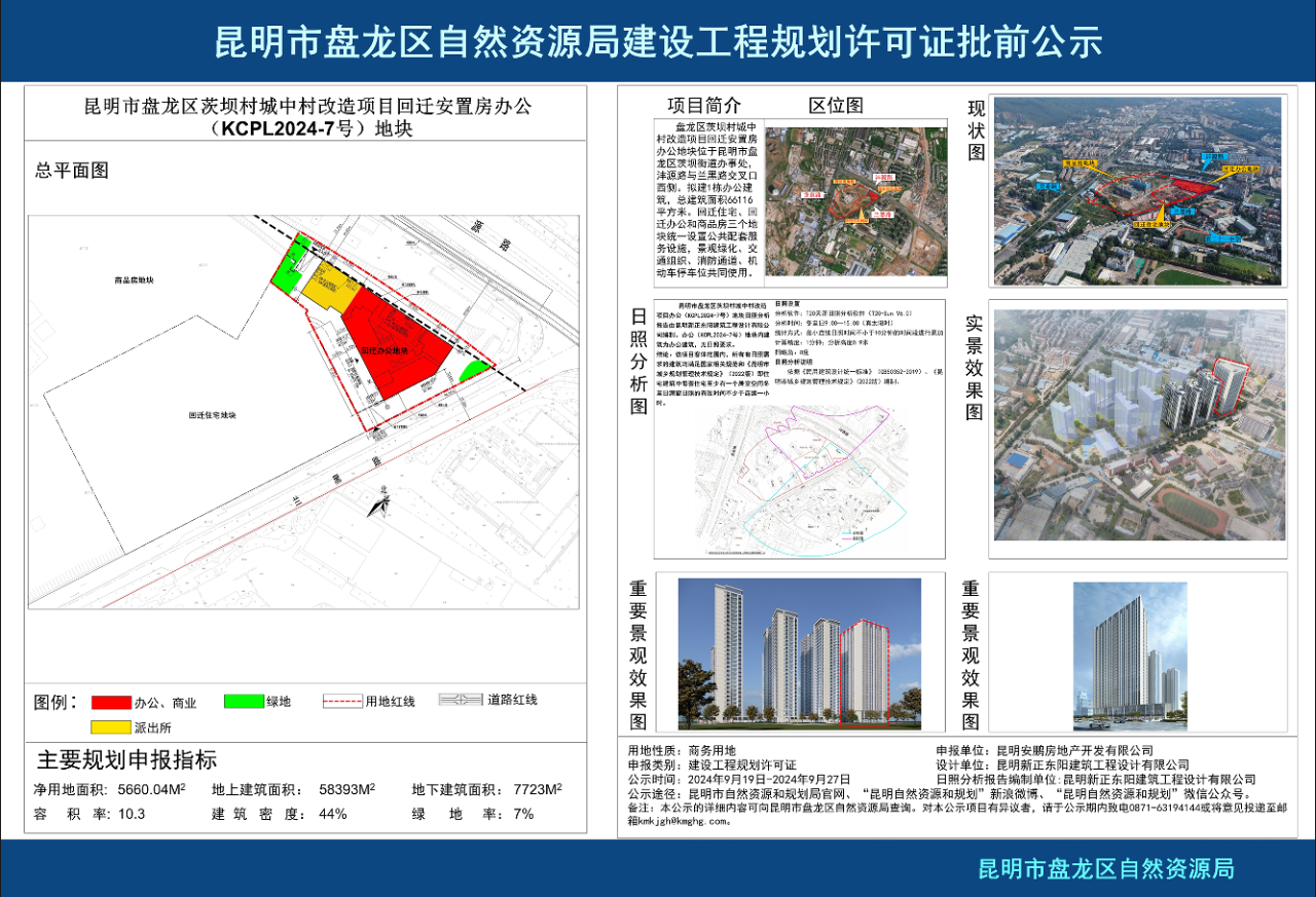 9月19日,昆明自然資源和規(guī)劃官網(wǎng)發(fā)布了盤龍區(qū)茨壩村城中村改造項目回遷安置房KCPL2024-6、KCPL2024-7號地塊批前公示以及官渡區(qū)方旺片區(qū)KCGD2024-1號地塊保障性住房項目批后公示。