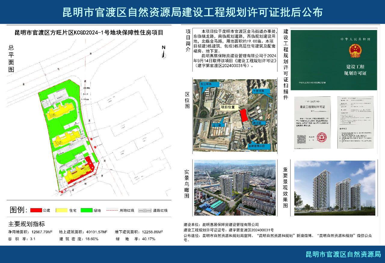 KCGD2024-1地塊是官渡區(qū)方旺片區(qū)保障性住房項目,位于昆明市官渡區(qū)金馬街道辦事處東臨鎮(zhèn)龍路,南臨規(guī)劃道路,西臨規(guī)劃建設(shè)用地,北臨金馬路.用地面積約19.00畝。項目擬建3棟建筑,包括3棟高層住宅建筑及配套裙房、地下室。該地塊距地鐵四號線牛街莊站1.5公里,項目容積率3.1,總層數(shù)為23-26層。