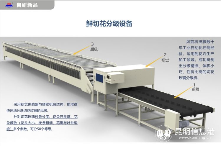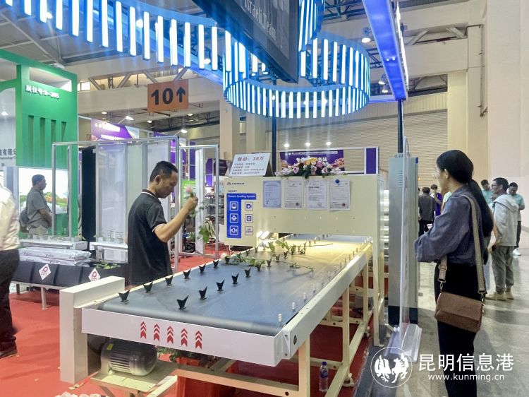 由昆明風前科技有限公司展出了自主研發(fā)的花卉自動分揀機