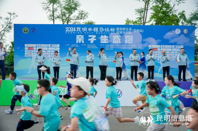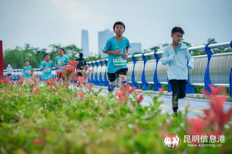 現(xiàn)場,孩子們身著藍(lán)色的運(yùn)動(dòng)服,與家長們手牽手,興奮地等待著比賽的開始。隨著發(fā)令槍響起,參加2024昆明半程馬拉松親子生態(tài)跑項(xiàng)目的選手們沖出起跑線,爭先恐后沿著蜿蜒的路線,一路奔跑。一幕幕速度與激情上演,盡享濱湖風(fēng)光,盡覽沿途風(fēng)光之秀美。