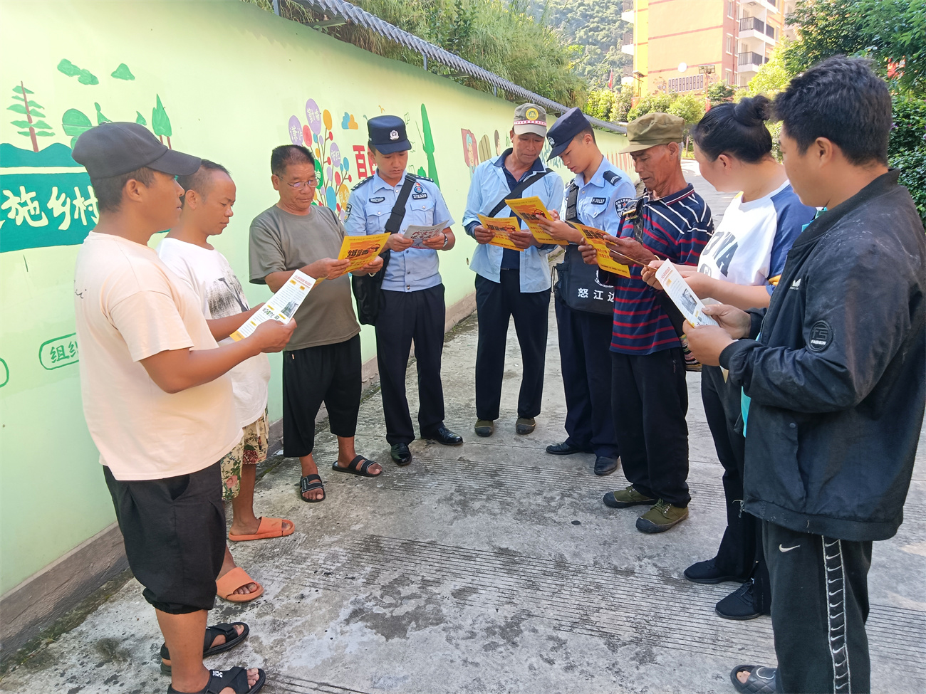 9月18日,由怒江邊境管理支隊古登邊境派出所、古登鄉(xiāng)綜治辦、司法所、農(nóng)村信用社等6家駐地企事業(yè)單位,12個村委會(社區(qū))組成的“民族特色普法隊”到恩河社區(qū)開展“普法助農(nóng)話平安”活動。