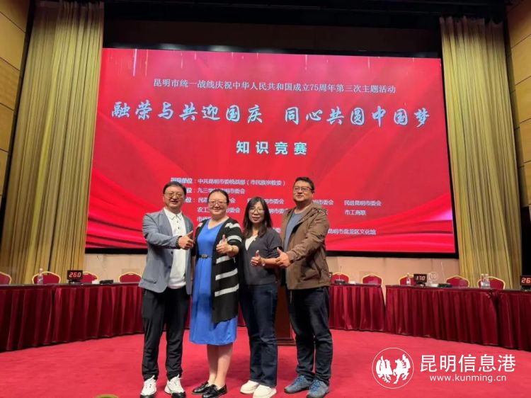 昆明信息港訊 在中華人民共和國成立75周年之際,為激發(fā)全市廣大黨員的愛國熱情,堅(jiān)定永遠(yuǎn)跟中國共產(chǎn)黨走的理想信念,致公黨昆明市委會作為協(xié)辦單位,組織盤龍區(qū)基層委、五華區(qū)基層委和官渡區(qū)基層委三支隊(duì)伍共9名隊(duì)員參加了全市統(tǒng)一戰(zhàn)線“融榮與共迎國慶 同心共圓中國夢 ”知識競賽活動。