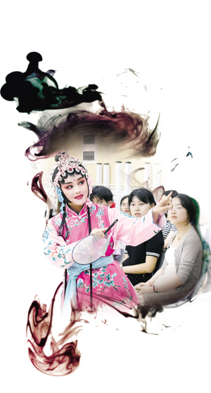 云南大學(xué)學(xué)生學(xué)習(xí)滇劇表演。記者楊艷輝攝