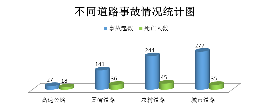 (三)農(nóng)村道路事故高發(fā),高速公路事故較平時(shí)上升,省道較大事故高發(fā)。農(nóng)村道路發(fā)生的事故起數(shù)占國慶假期事故起數(shù)總數(shù)的35.41%(如圖6所示)。高速公路事故起數(shù)高于平時(shí)(3.11%)0.81個(gè)百分點(diǎn),特別是簡(jiǎn)易程序交通事故增幅較大,國慶期間高支隊(duì)轄區(qū)簡(jiǎn)易程序事故日均91起,是平時(shí)日均17起的5.35倍。