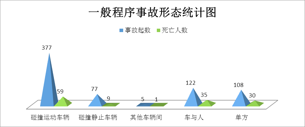 (四)碰撞運(yùn)動(dòng)車輛事故多發(fā)。碰撞運(yùn)動(dòng)車輛事故占國慶事故的54.72%(如圖7所示)。高速公路以追尾碰撞事故為主,普通國省道主要以車輛之間的側(cè)面碰撞、正面碰撞事故為主。