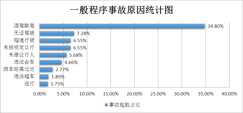 (五)酒駕醉駕、無證、超速等嚴(yán)重違法行為引發(fā)事故突出。酒駕醉駕、無證駕駛、超速行駛、未按規(guī)定讓行、未避讓行人等重點(diǎn)違法行為肇事突出。其中,酒駕醉駕肇事居首位,占總量的34.08%(如圖8所示)。節(jié)日期間酒駕醉酒肇事占比高于平時(shí)(33.8%)0.28個(gè)百分點(diǎn)。