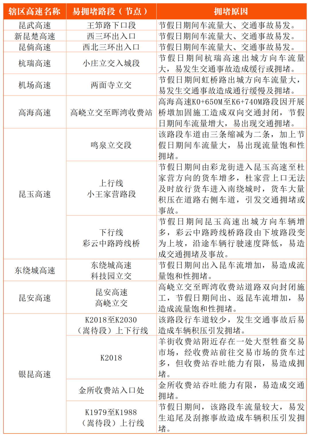 四、昆明周邊道路易擁堵路段