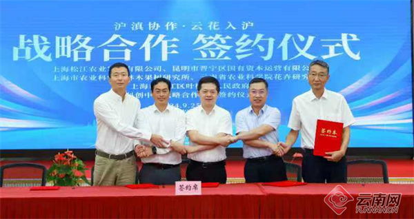 活動(dòng)促成上海松江農(nóng)業(yè)發(fā)展有限公司、昆明市晉寧區(qū)國有資本運(yùn)營有限公司、上海市農(nóng)業(yè)科學(xué)院林木果樹研究所、云南省農(nóng)業(yè)科學(xué)院花卉研究所、上海市松江區(qū)葉榭鎮(zhèn)人民政府五方代表簽署滬滇產(chǎn)業(yè)科創(chuàng)中心戰(zhàn)略合作協(xié)議。云南新征程花卉交易有限公司與上海綠宇農(nóng)業(yè)科技發(fā)展有限公司簽署花卉遠(yuǎn)程交易平臺落地啟動(dòng)協(xié)議,云南新基易農(nóng)業(yè)科技有限公司與上海天祿園藝有限公司簽署云花入滬供應(yīng)鏈體系合營共建協(xié)議。
