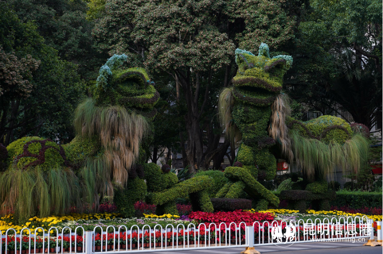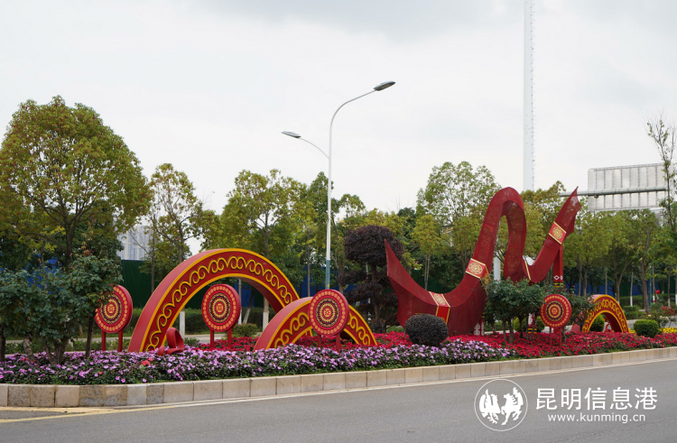 經開區(qū)在春漫大道、石龍路沿線進行時令花卉更換,在道路重要節(jié)點打造花境并設置立體花壇;在納源路以滇越鐵路連通兩國友誼為主題,設置高鐵造型的立體花壇;在觀山公園采用時令花卉更換,彩旗設置等方式營造歡樂祥和的節(jié)日氛圍。