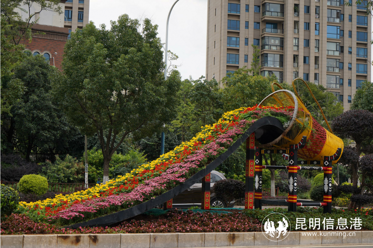昆明信息港訊 記者楊雁 近日,漫步昆明大街小巷,花香四溢,滿眼繽紛,喜迎國慶的鮮明主題、獨具特色的立體花壇、五彩斑斕的美麗花?!谥腥A人民共和國75周年華誕即將到來之際,昆明各大城市廣場、步行街區(qū)、重要交通節(jié)點、出入場站等區(qū)域花團錦簇,裝扮一新,處處洋溢著熱烈歡樂祥和的節(jié)日氛圍。
