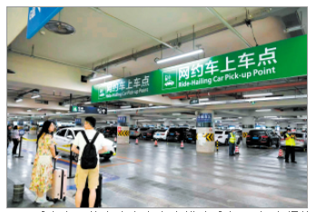 乘客在網(wǎng)約車上車點有序排隊乘車。 記者楊艷輝攝