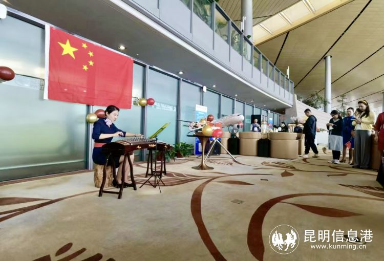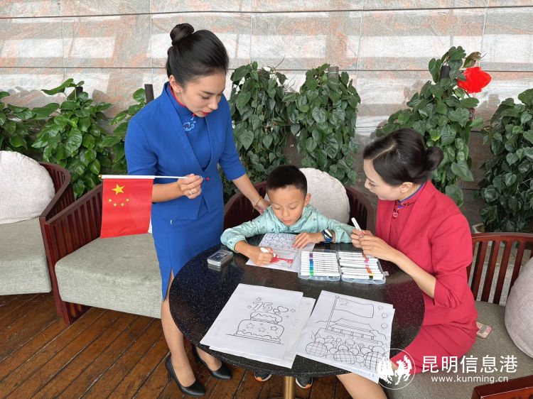 10月1日10時(shí),隨著《萬疆》《我和我的祖國》音樂聲響起,東航云南公司工作人員齊聚在昆明長(zhǎng)水國際機(jī)場(chǎng)候機(jī)樓V8休息室獻(xiàn)上精心編排的節(jié)目,動(dòng)人的古箏旋律和激昂的歌聲引得旅客紛紛駐足觀看,旅客們與工作人員揮舞著手中的五星紅旗,共同哼唱,表達(dá)對(duì)祖國母親的熱愛和感恩。工作人員更是別出心裁,組織了“手繪中國夢(mèng)”與“非遺竹編探索”等精彩活動(dòng)。工作人員邀請(qǐng)當(dāng)天乘機(jī)的小旅客們用斑斕的畫筆勾勒出對(duì)祖國母親的祝福,活動(dòng)現(xiàn)場(chǎng),小旅客們踴躍參與,分享著各自的體驗(yàn)與樂趣。