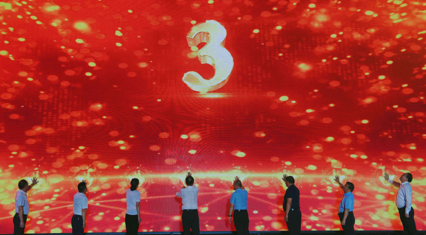 出席活動(dòng)領(lǐng)導(dǎo)上臺(tái)觸摸大屏幕啟動(dòng)儀式