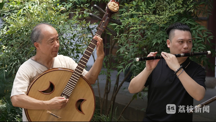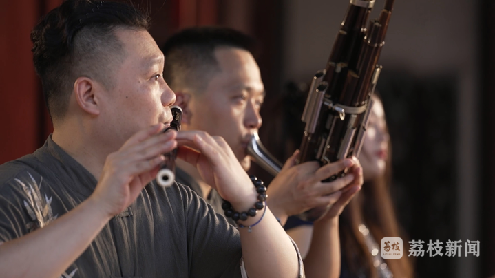 大學期間,周舟來到江南絲竹館實習,與陳建中老師合奏,師徒倆從那時便開始惺惺相惜。陳建中評價周舟很“踏實”:“他是科班出身,但是即便是規(guī)模很小的演奏,他也會主動提出要上臺,珍惜每一次鍛煉的機會?!倍嗄旰?,周舟擔任太倉市文化館副館長,與陳建中再次合作,將多個異地的江南絲竹樂團組合在一起,辦起了“江南絲竹傳承音樂會”。至今,他們已成功舉辦八場音樂會,每一場合奏都是一次心靈的共鳴,不僅展現了江南絲竹的魅力,也為這一文化遺產的傳承添上了濃墨重彩的一筆。
