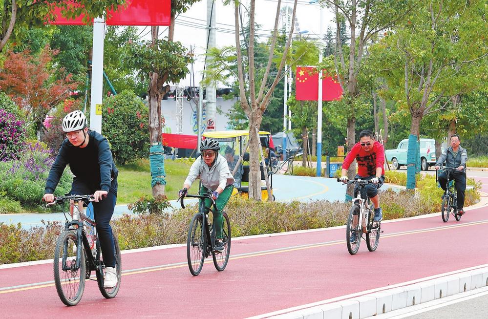 市民在滇池綠道騎行
