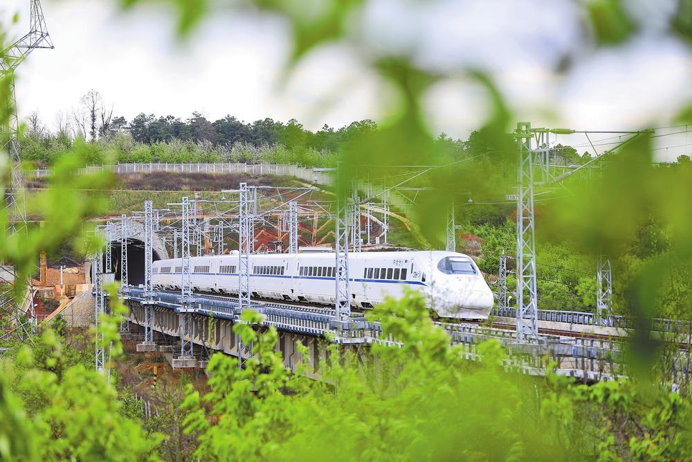 和諧號動車組飛馳在春城大地上。