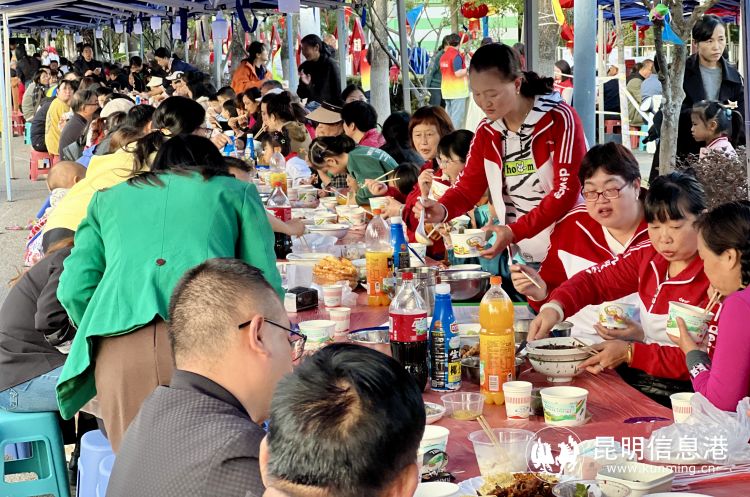 現(xiàn)場設(shè)置了免費(fèi)體檢區(qū),65歲及以上的老人可以憑借身份證免費(fèi)參與體檢。此外,現(xiàn)場還有昆明市公安局經(jīng)開分局工作人員為居民宣講未成年人保護(hù)、反電信詐騙等內(nèi)容。下午舉行的百家宴也尤為熱鬧,一盤盤熱騰騰的“私房菜”很快就把桌子擺得滿滿當(dāng)當(dāng),活動洋溢著煙火氣,承載著鄰里情,流淌出濃濃的幸福味道。