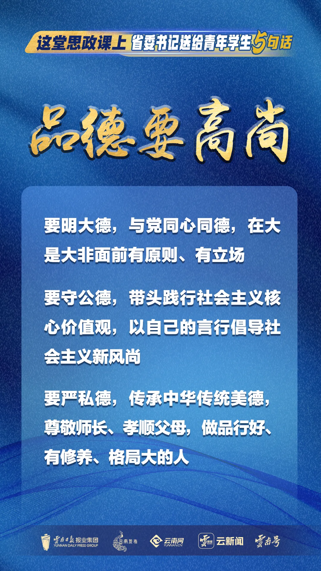 10月11日,省委書記王寧到云南民族大學(xué)作形勢政策報(bào)告、講授思政課,與我省高校師生共同深入學(xué)習(xí)習(xí)近平總書記給普洱民族團(tuán)結(jié)誓詞碑盟誓代表后代重要回信、在全國教育大會(huì)上的重要講話精神,宣講黨的二十屆三中全會(huì)精神,勉勵(lì)全省廣大青年學(xué)生堅(jiān)定信仰信念信心,立報(bào)國強(qiáng)國大志向、做挺膺擔(dān)當(dāng)奮斗者,在云南改革發(fā)展的生動(dòng)實(shí)踐中激昂青春、拼搏奉獻(xiàn),在強(qiáng)國建設(shè)、民族復(fù)興偉業(yè)中書寫精彩人生。