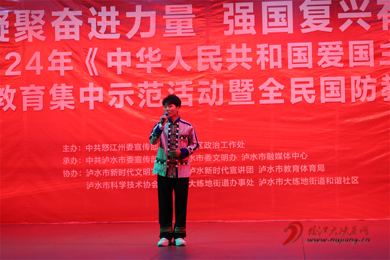 10月9日,怒江州2024年《中華人民共和國愛國主義教育法》宣傳教育集中示范活動(dòng)暨全民國防教育活動(dòng)在瀘水市大練地街道和諧社區(qū)啟動(dòng)。主題鮮明的宣講、精彩的文藝演出和市級(jí)各單位的集中科普宣傳為社區(qū)居民們帶來了一場(chǎng)震撼心靈的愛國主義盛宴。