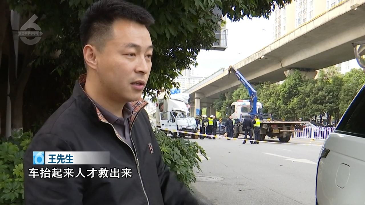 王先生:“我們所有人幫他推車,把貨物收拾了,車抬起來(lái)人才救出來(lái)?!?/p>
