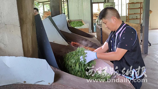 權曉輝在炒茶。