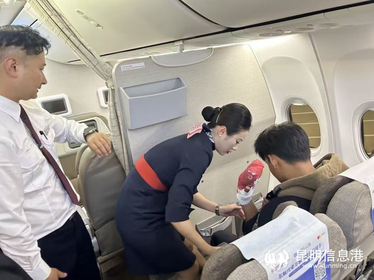 當日,在即將從保山飛往昆明的MU5988航班上,乘務組突然接到保山機場通知:一名16歲男孩手指不慎被機器切斷,需要在父母陪同下搭乘本次航班,緊急前往昆明進行救治。