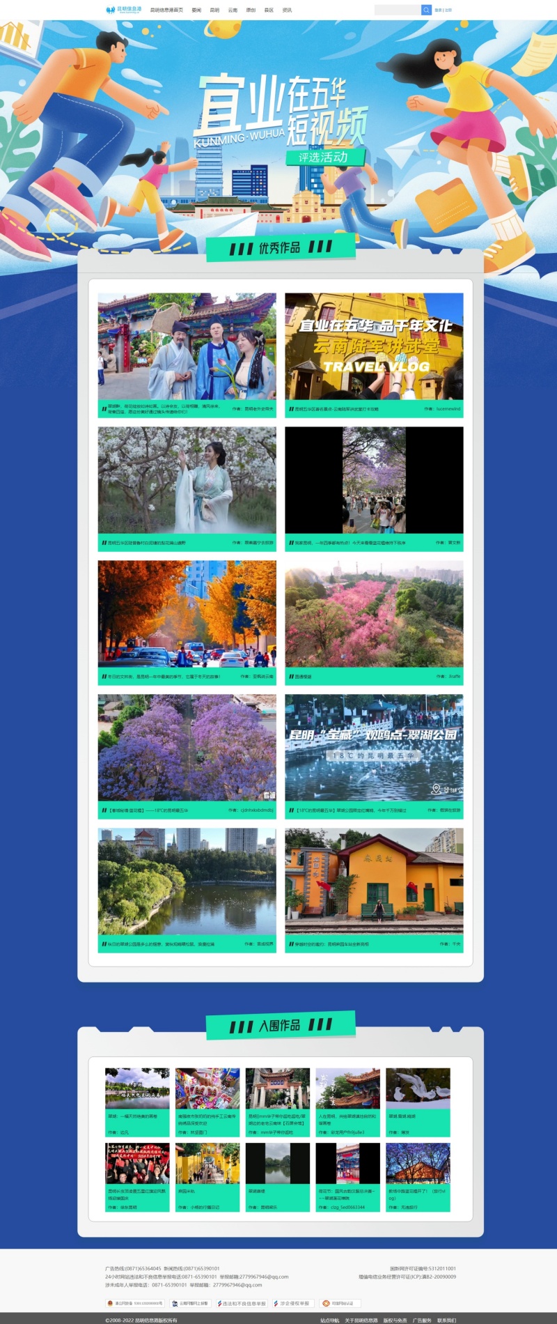 昆明信息港訊 日前,由中共五華區(qū)委網(wǎng)信辦指導(dǎo),五華區(qū)文學(xué)藝術(shù)界聯(lián)合會(huì)、五華區(qū)網(wǎng)絡(luò)協(xié)會(huì)聯(lián)合主辦的“宜業(yè)在五華”短視頻評(píng)選活動(dòng)落下帷幕,主辦方評(píng)審團(tuán)隊(duì)經(jīng)過初評(píng)、終評(píng)環(huán)節(jié),從投稿的115件作品中評(píng)選出優(yōu)秀作品10件、入圍作品10件。