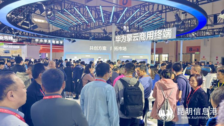 華為擎云展臺(tái)受熱捧。記者上官艷君 攝