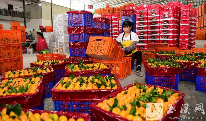 近日,在云南華寧邦泰農(nóng)業(yè)發(fā)展有限公司選果車間,工人忙著分揀柑橘。柑橘作為華寧縣優(yōu)勢特色產(chǎn)業(yè)和當(dāng)?shù)厝罕娫鍪罩赂恢еa(chǎn)業(yè),目前全縣已培育市級以上柑橘產(chǎn)業(yè)龍頭企業(yè)8戶,有柑橘專業(yè)合作社33個、家庭農(nóng)場33個、分選廠101家、商會1個、個體經(jīng)營戶1536戶。2024年,全縣柑橘種植面積達(dá)15萬畝,預(yù)計產(chǎn)量超過50萬噸,產(chǎn)值可突破15億元。(玉溪市融媒體中心 記者曾永洪 攝)