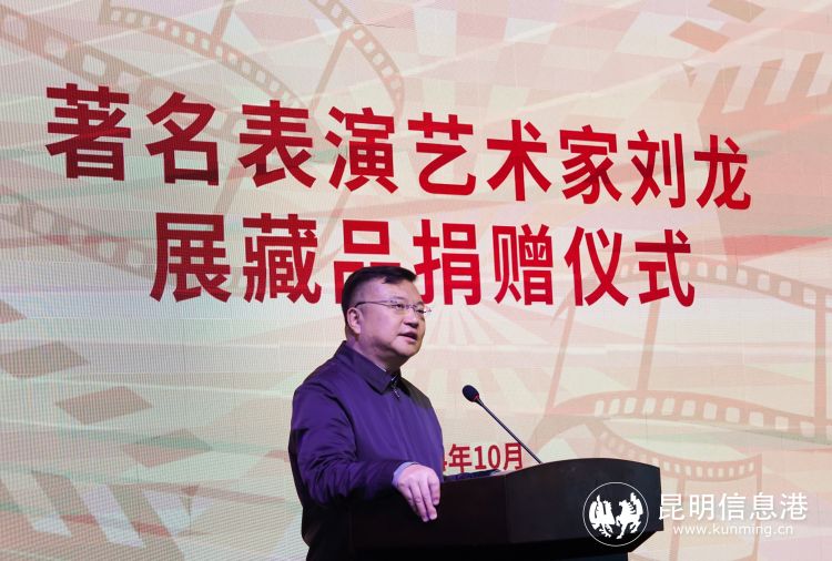 云南省文聯(lián)黨組書記、主席孫炯在致辭中說,老一輩著名表演藝術(shù)家劉龍同志在演藝生涯中,塑造了許多深入人心的熒幕形象,是受人尊敬和敬仰的杰出表演藝術(shù)家,為繁榮云南文學(xué)藝術(shù)事業(yè)做出了積極的貢獻(xiàn)。此次劉龍同志的親屬,將展現(xiàn)他藝術(shù)人生的一批文獻(xiàn)和資料捐贈(zèng)給云南文學(xué)藝術(shù)館,既體現(xiàn)了劉龍同志對(duì)第二故鄉(xiāng)云南的深情厚誼,也是對(duì)云南文學(xué)藝術(shù)館的一份沉甸甸的信任。作為集收藏保護(hù)、展覽展示、社會(huì)教育、對(duì)外交流、學(xué)術(shù)研究、游覽參觀、文化休閑功能為一體的云南文學(xué)藝術(shù)館,要積極整理好、保存好、挖掘好展藏品,并充分利用好展藏品,彰顯好老一輩優(yōu)秀藝術(shù)家的精彩藝術(shù)人生,以實(shí)現(xiàn)應(yīng)有的社會(huì)價(jià)值和學(xué)術(shù)價(jià)值。孫炯說,劉龍同志在云南工作生活的30年,彩云之南這塊豐饒的土地滋養(yǎng)了他,他又以自己卓越的藝術(shù)成就回饋這塊土地。孫炯希望我省廣大文藝工作者努力踐行習(xí)近平文化思想,以劉龍同志為代表的老一輩藝術(shù)家為榜樣,走進(jìn)生活、扎根人民,勤奮創(chuàng)作出更多更好的文藝精品;也期盼我們的老一輩文學(xué)藝術(shù)家,重視自己藝術(shù)人生的回顧和總結(jié),把更多的展現(xiàn)云南文藝發(fā)展史的展藏品放到云南文學(xué)藝術(shù)館,讓云南文學(xué)藝術(shù)館真正成為一個(gè)展現(xiàn)云南文學(xué)藝術(shù)史的大型平臺(tái),回顧歷史、致敬先賢,啟迪后人、面向未來。