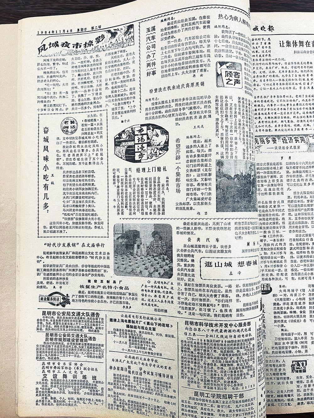 一九八四年十一月四日《春城晚報》二版