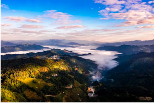 俯瞰云南省西雙版納州勐臘縣易武鎮(zhèn)大地,在連綿群山之中,在云霧環(huán)繞之下,時(shí)隱時(shí)現(xiàn)一片片樹林,讓你無法確定哪兒是森林,哪里是茶林。