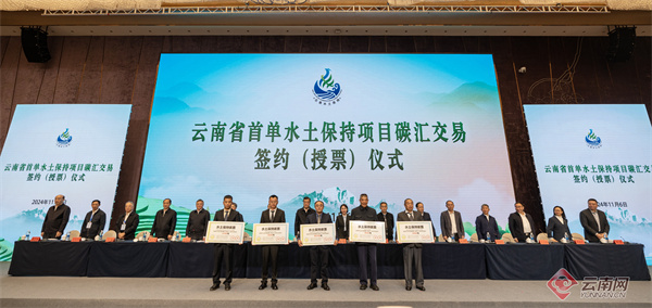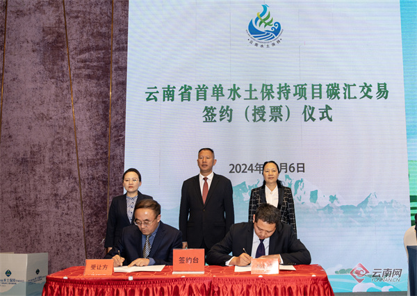 11月6日,第五屆中國(guó)水土保持學(xué)術(shù)大會(huì)在昆明召開。會(huì)上,云南省首單水土保持項(xiàng)目碳匯交易成功簽約。此次交易曲靖市馬龍區(qū)共轉(zhuǎn)讓水土保持碳匯量11.56萬(wàn)噸,金額381.48萬(wàn)元,平均每噸33元,為西南地區(qū)金額最大的水土保持項(xiàng)目碳普惠交易。