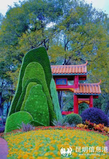 西福路下穿隧道南側(cè),增設(shè)一組蝴蝶為主題元素的立體花壇,設(shè)置多個大小不一蝴蝶造型立體花雕,配合種植多種花卉植物,展現(xiàn)“聚首昆明 攜手未來”主題。