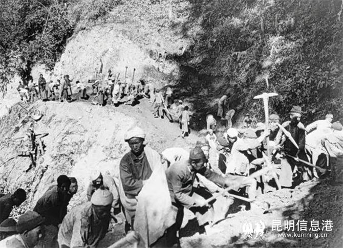 云南人民當(dāng)年舍生忘死修建滇緬公路的照片。供圖