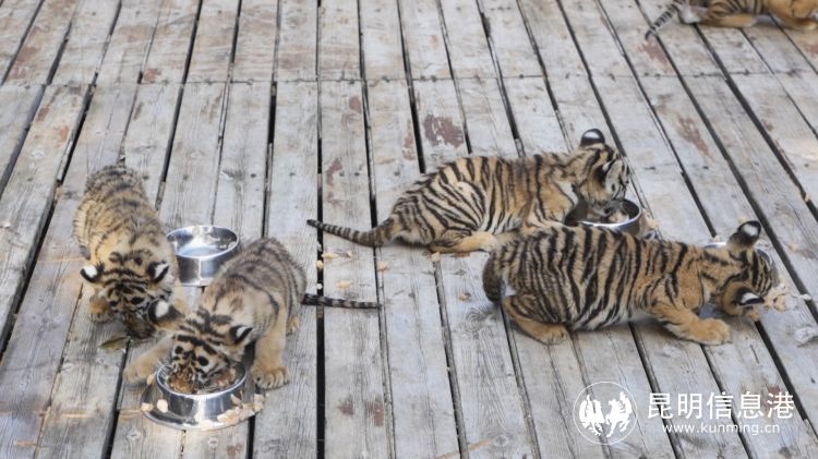 昆明信息港訊 記者周弦 “哇!這么多小老虎!吃飯吃到轉圈圈!”11月19日,云南野生動物園11只小老虎和游客正式見面,引起了一陣歡呼。