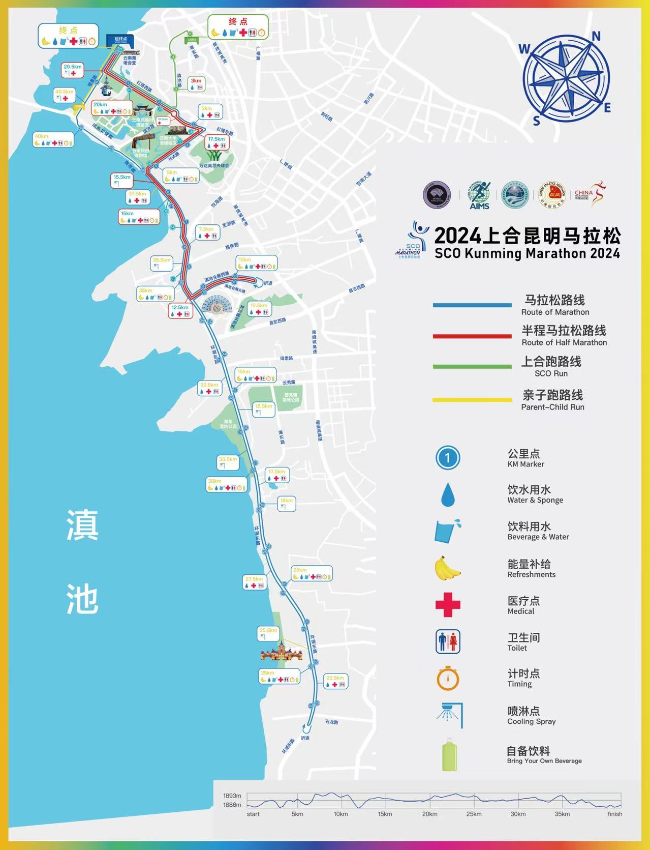 2024上合昆明馬拉松賽道從云南海埂會堂出發(fā),經(jīng)滇池大壩、紅塔西路、紅塔東路、興體路、湖濱路、環(huán)湖東路、滇池會展西路等路段回到起點。相較于昆明半程馬拉松賽道以展示城市發(fā)展和人文風貌為主線,上合昆明馬拉松賽道圍繞滇池旅游黃金岸線打造,沿途經(jīng)過海洪濕地、星海半島湖濱生態(tài)濕地、寶豐濕地、王官濕地、斗南濕地、海埂公園及昆明滇池國際會展中心,以更加立體多元展示我市“綠美春城”“幸福春城”的城市特質(zhì)。