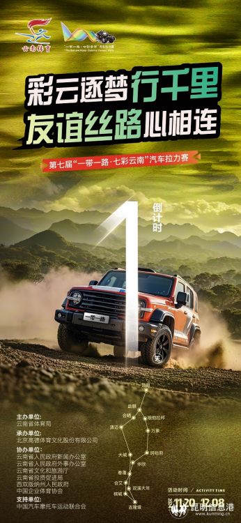 昆明信息港訊 記者周智宇 11月20日,第七屆“一帶一路?七彩云南”汽車?yán)愓絾⒊獭?5輛越野車組成的車隊從中國出發(fā),將途經(jīng)老撾會曬、泰國清邁、馬拉西亞吉隆坡等地,歷時19天返回中國,總行程約8000公里。