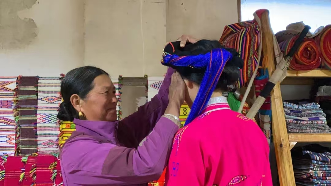 游客體驗民族服飾。(麗江融媒記者 木紅豆 攝)