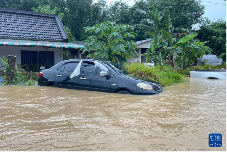 這是12月3日在泰國南部也拉府拍攝的被洪水浸泡的車輛。新華社發(fā)