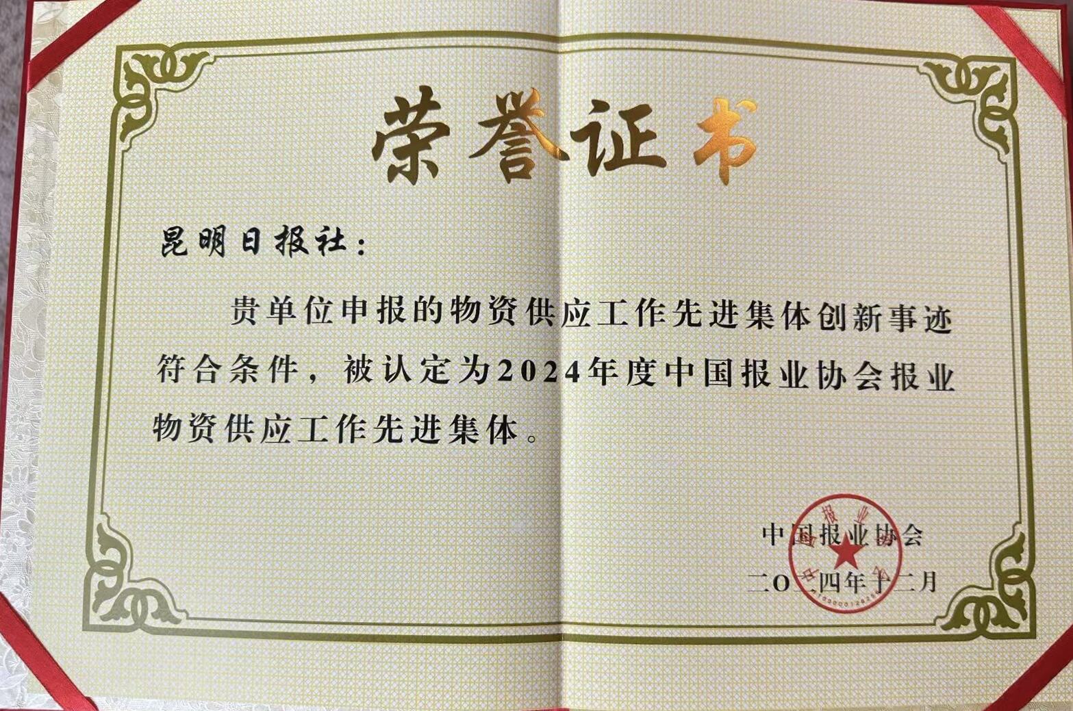 12月4日,中國報業(yè)物資供應年會在浙江省湖州市召開。會上,公布了入選“2024年報業(yè)物資供應工作先進集體”單位名單。昆明日報社印刷廠在物資供應服務、采購、管理等方面展現(xiàn)了高效、專業(yè)的能力,為報業(yè)的順暢運行和持續(xù)發(fā)展提供了有力保障,榮獲中國報協(xié)“2024年度報業(yè)物資供應先進集體”稱號。