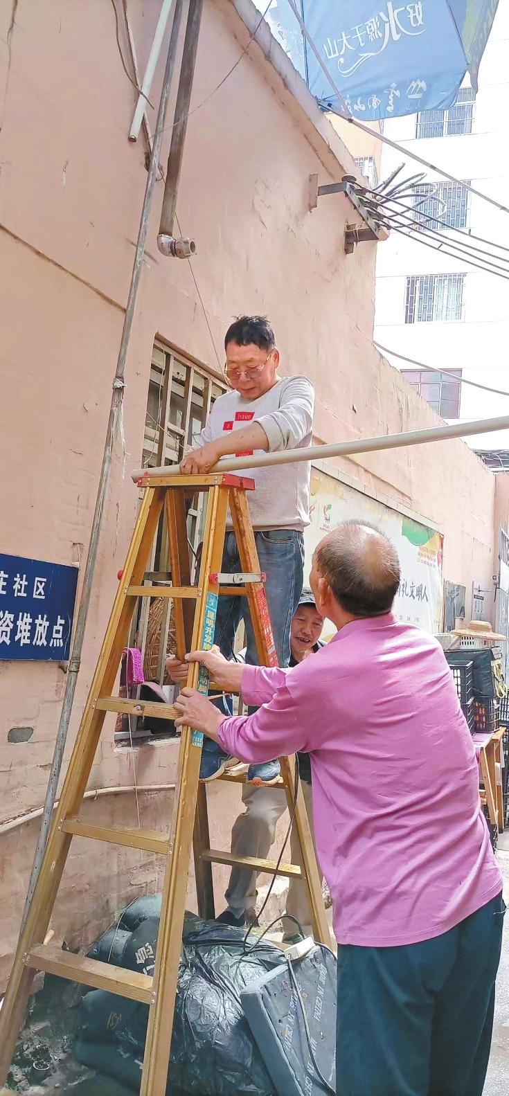 李長(zhǎng)生和院壩居民梳理樓院電線。